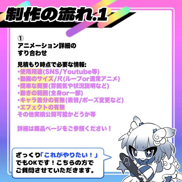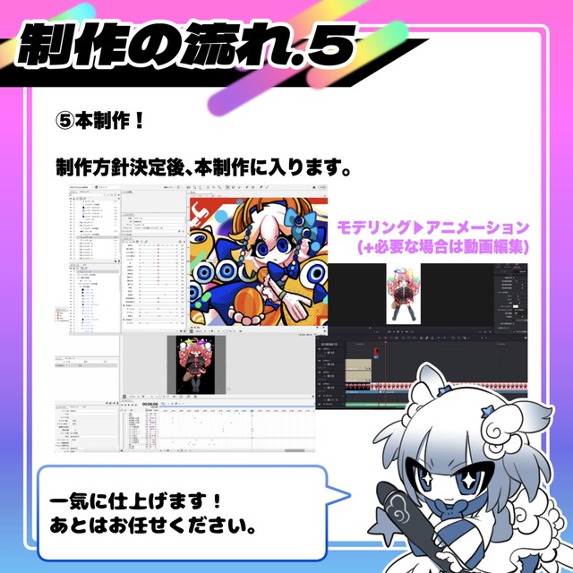 ・パーツ分け+アニメーションのみ等の一部制作についても承っております。お気軽にご相談ください。