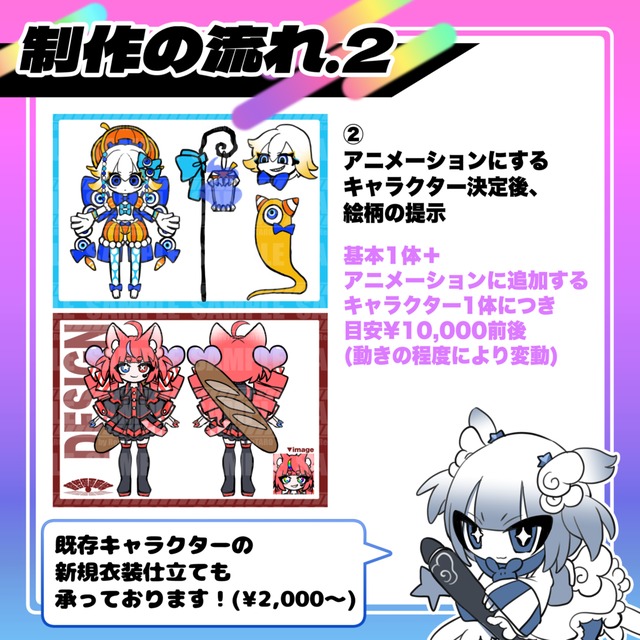 (キャラクターデザイン、既存キャラクターの衣装仕立てなども承っております!)