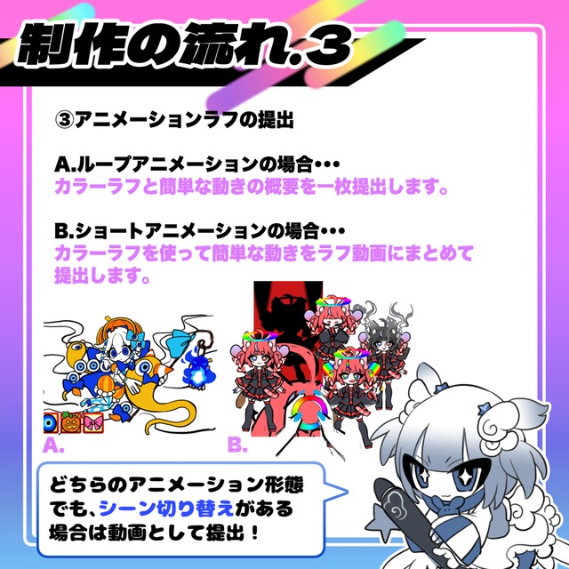 3. 1ですり合わせてもらった内容をもとに、アニメーションラフを提出いたします。
