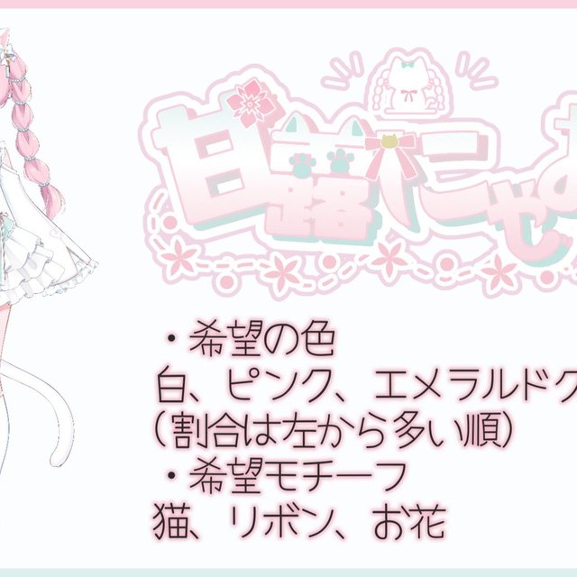 ヒアリングシートと、とにかく立ち絵に合うように、とお任せでお願いしました。要望通り、そして要望以上に!お洒落でかわいいくて綺麗で、センスのあるネームロゴを作っていただき大変満足しております。この度は誠にありがとうございました!
