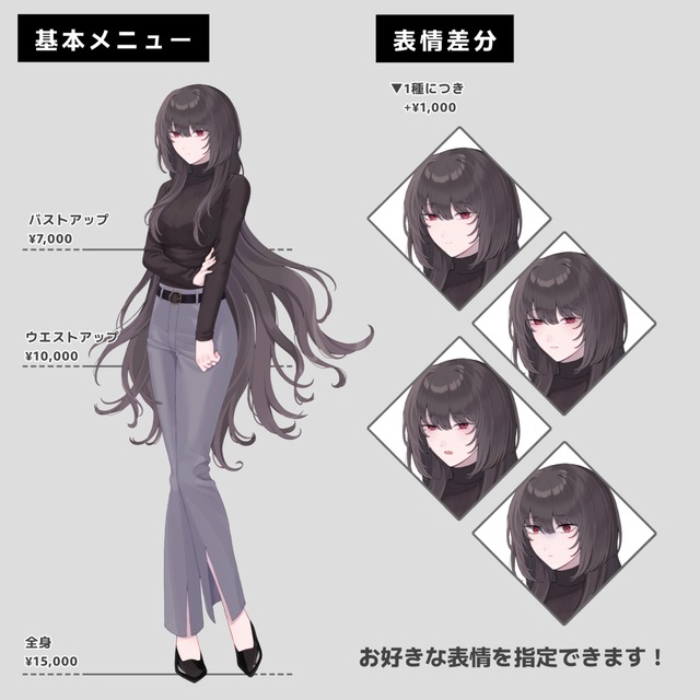 ・表情差分…1種類につき+¥1,000