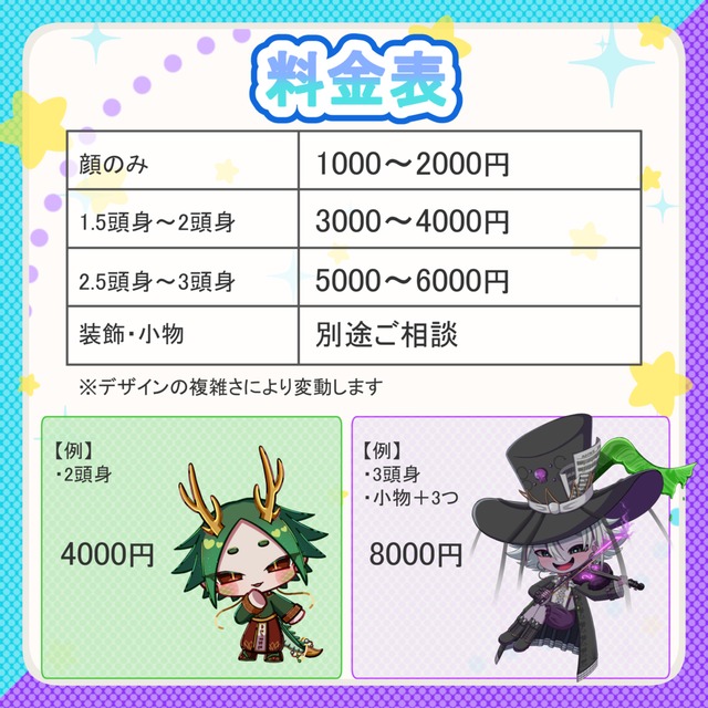 ※版権キャラクターはお受けできかねます。