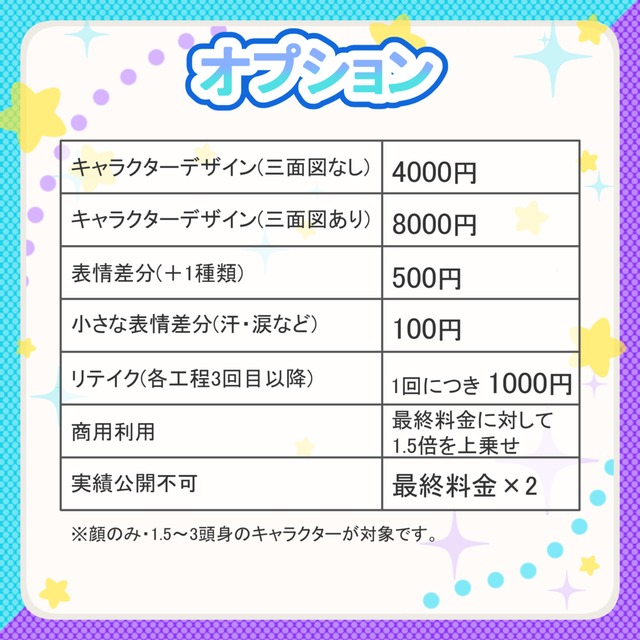 ・キャラクターデザイン(三面図なし)…+4,000円