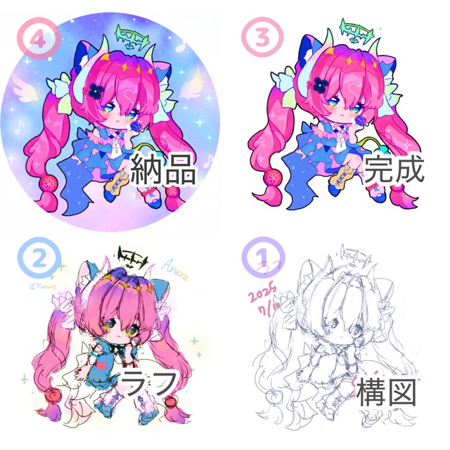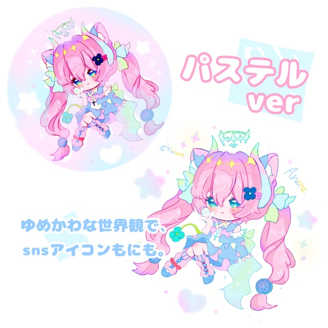 配信・アイコン用◎ゆめかわ魔法少女デフォルメキャラ描きます🌙(期間限定価格)