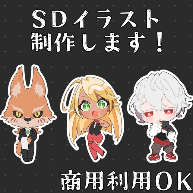 グッズ、配信サムネ、アイコン、スタンプ、メンバーシップ、歌ってみたなどに使用できるSDキャライラストを描かせていただきます。