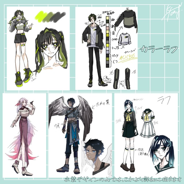 また、キャラクターのデザイン案やポージング案も、細かいところまでこだわって描いてくださっていて非常に感動しておりました!