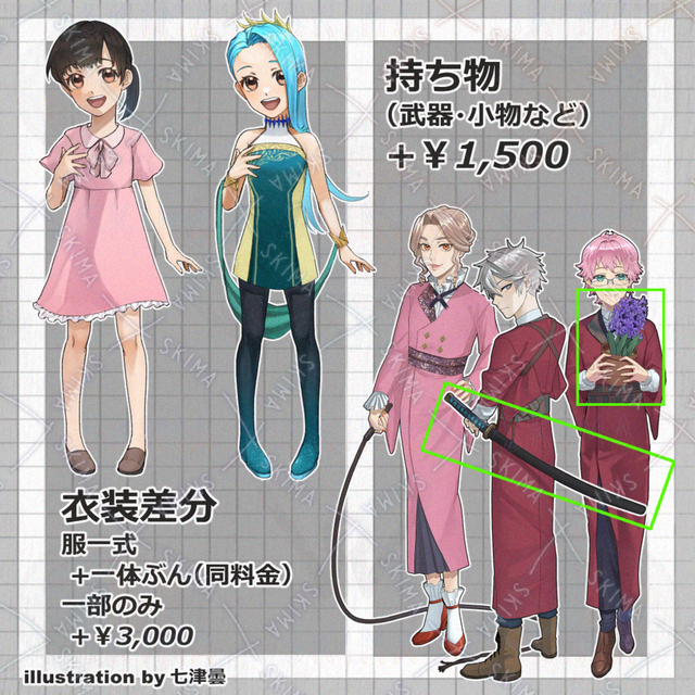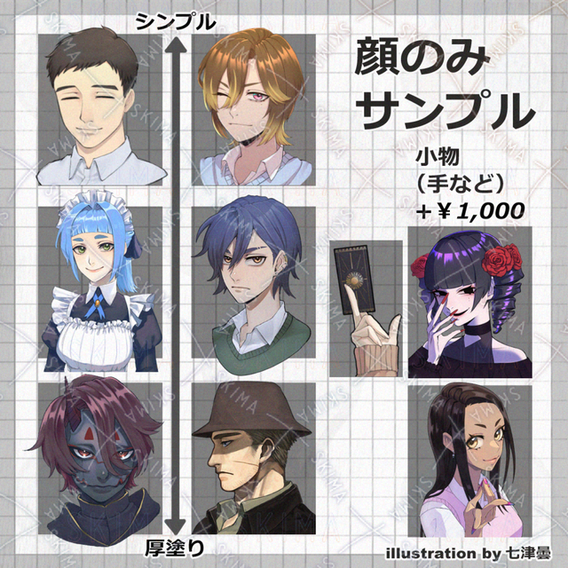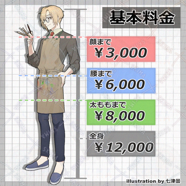 七津 雲/ななつ どん →X 旧Twitter〈 https://twitter.com/772dn 〉 不慣れなためご不便をおかけしますが頑張って描きます。 よろしくお願いします。 制作期間は最低15日程度を予定しております。 ご依頼はSKIMAメッセージでお気軽にご相談下さい。 ※無断転載・トレース行為・自作発言・AI学習禁止※ 対策のため透かしを入れております。ご了承ください。
