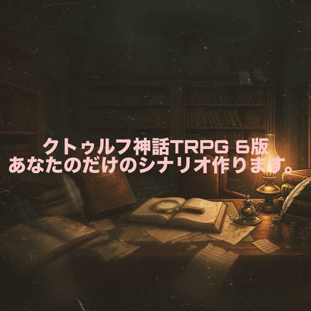 よろしくお願いします。 BOOTH,Taltoにてクトゥルフ神話TRPG第六版のシナリオ公開、販売してるものです。 直近だとポトラ企画への参加をしています。 クソシ祭りへの参加も予定しています。 Booth https://x.gd/JSLjf TALTO https://talto.cc/bookmarks ▼こういうことができます! ・クラシック、ホラーよりの展開、描写、構成 ・うつ描写、展開 ・学問ベースの要素を取り入れたシナリオ作成 ・丁寧な伏線の回収 ・暴力表現、グロゴア表現 ・医療に関する描写 ▼苦手・できないこと ・BL,GLなどの性的描写 ・一般的なHAPPY ENDを書くこと ▼期間の目安 ※リライト、再校正の場合 短編シナリオ:5000字~1万字→2週間程度 中編シナリオ:1万字~2万字→ 1か月 長編シナリオ:2万字~4万字→1.5か月 ※1から作成する場合 短編シナリオ:5000~2万字 →1か月程度 長編シナリオ:2万字~4万字 →3か月程度 ▼使っているソフト ・LibreOffice