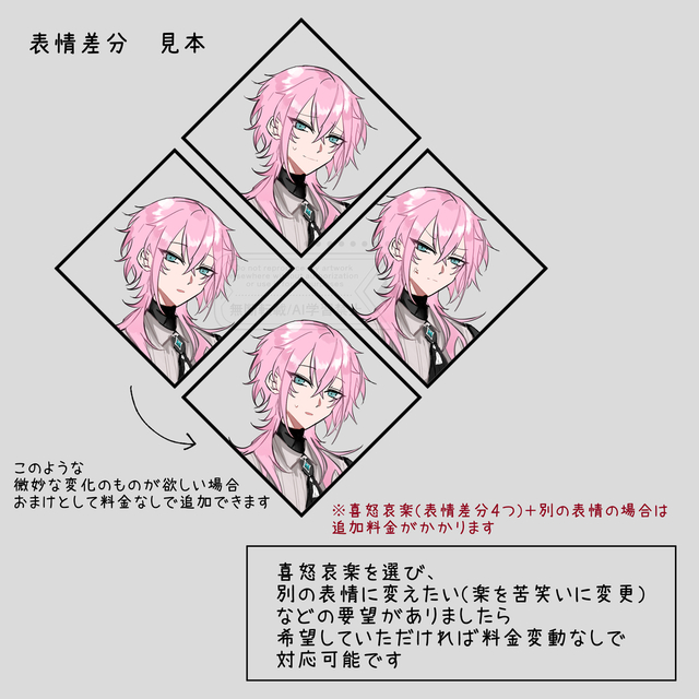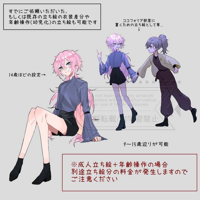 丁寧なヒヤリングと分かりやすい説明をして頂きました。細かい容貌にも答えて下さりとても素敵な立ち絵が完成致しました。また利用する機会がありましたらよろしくお願いいたします