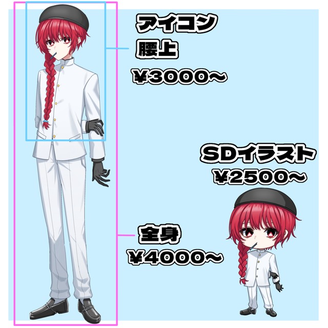 ※修正は、「ラフの提出」段階でご教示ください。ポーズや服装、装飾など大幅な変更はラフ完成後はお受けできません。