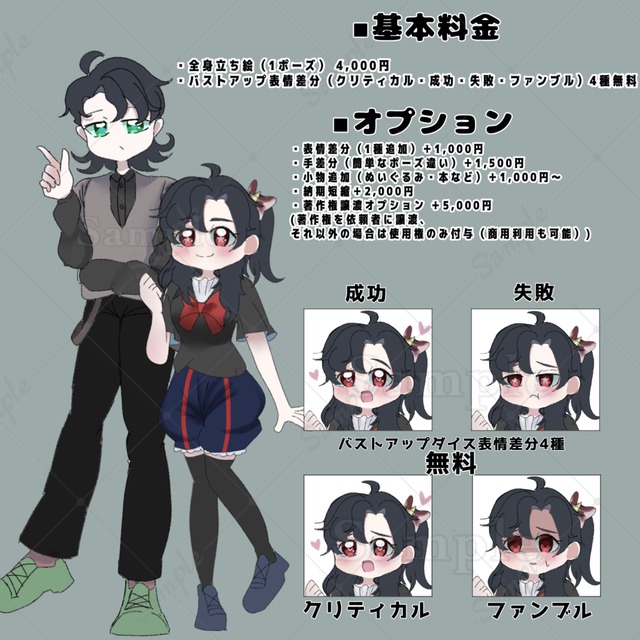 【TRPG用立ち絵制作】全身+バストアップ 表情差分4種無料