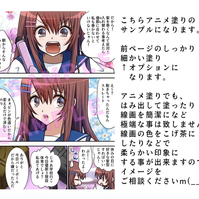 ◆基本料金(1P) ・アニメ塗り 線画の色2色  8500円