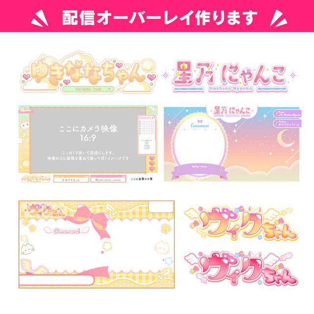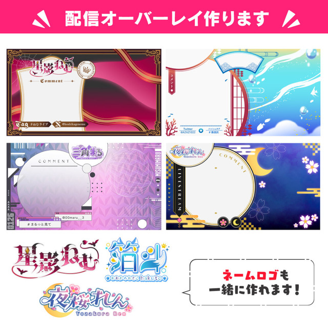 過去にネームロゴ・配信オーバーレイ・サムネイル等含め200件以上の受注経験ございます!