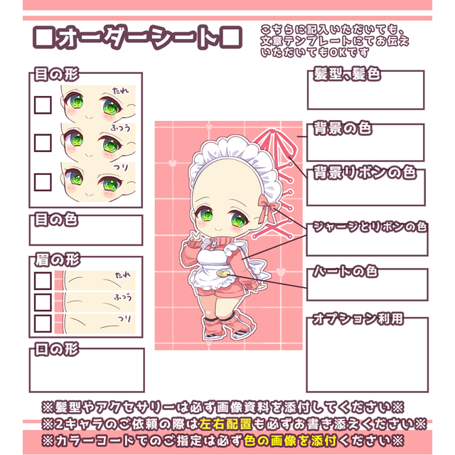 創作、版権(個人利用に限ります)、コテキャラ、活動者さん(商用利用オプションあり)などジャンル問わずお受けいたします。