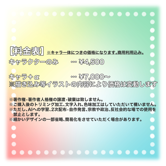 【料金】料金表参照/キャラ一体につきの価格/商用利用込み