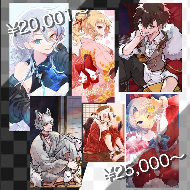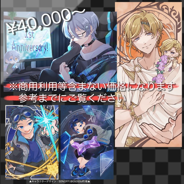 ※商用/二次利用の有無、背景の有無、キャラクターの人数などによって価格が異なります
