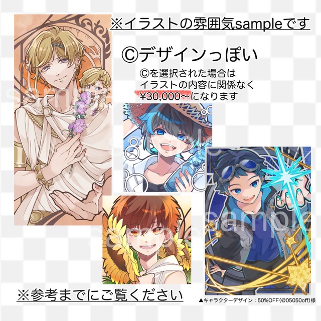 ※いずれの項目も参考画像がある方は制作に取り掛かる前までに提示をお願い致します