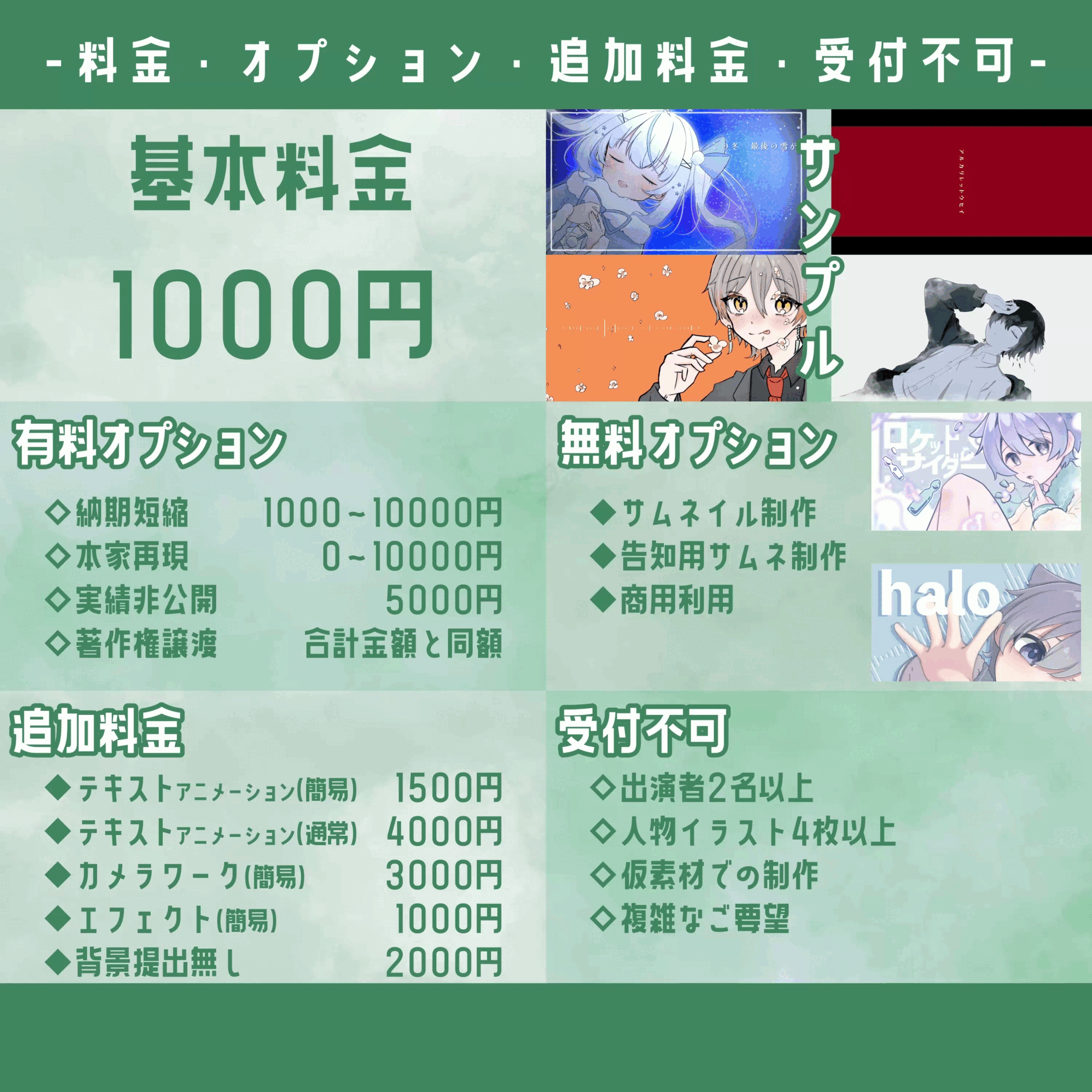 ◇無料オプション [ サムネイル制作 告知用サムネイル制作 商用利用 無し  (不要な項目を削除してください) ]