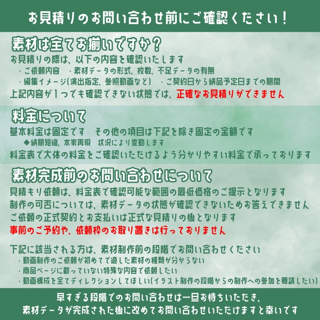 ご不明な点がございましたらお支払い前にお伝えください