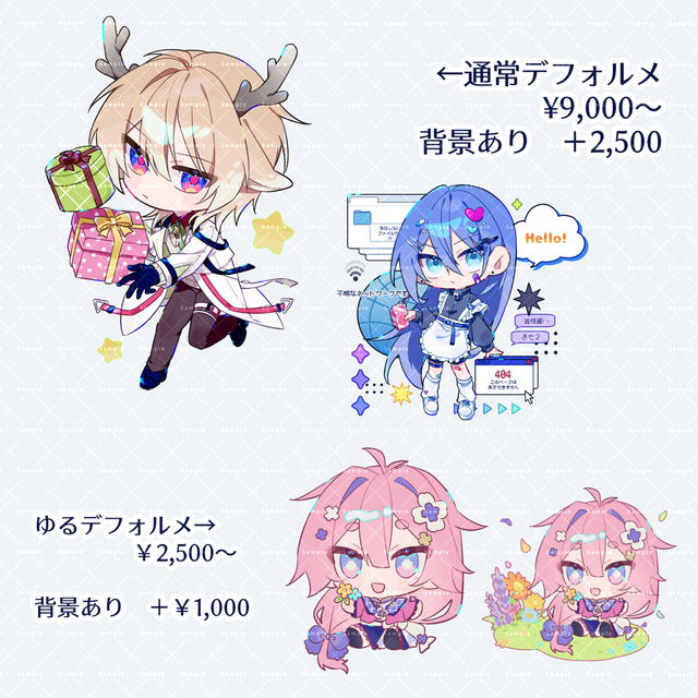 ・背景付き 通常デフォ¥2,500 ゆるデフォ¥1,000
