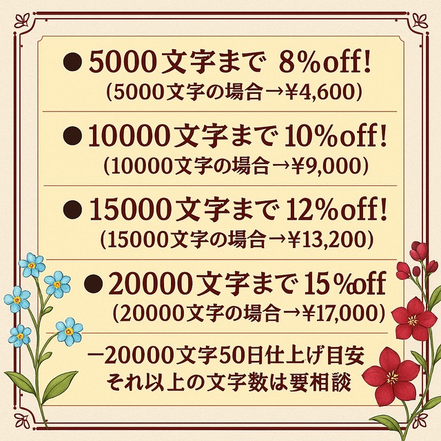 〜20000文字 15%off