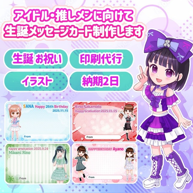 迅速にアイドル系イラスト・生誕メッセージカードを作成します