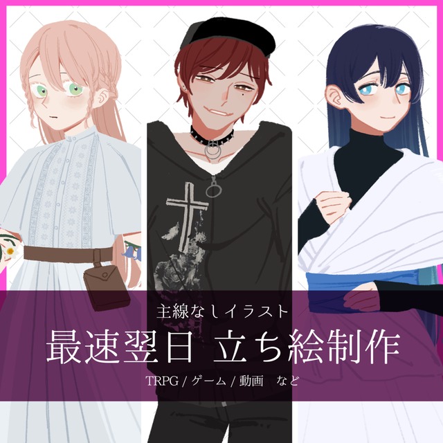 今回はリクエストにご提案いただき、創作キャラクター(男性CP)の詰め合わせイラストをお願いしました。