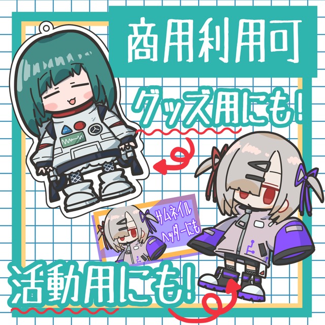 配信活動者様のグッズやサムネイル、SNSのアイコンなどにお使いいただけます。