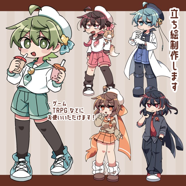 4〜4.5頭身ほどのデフォルメ調の立ち絵を制作いたします。