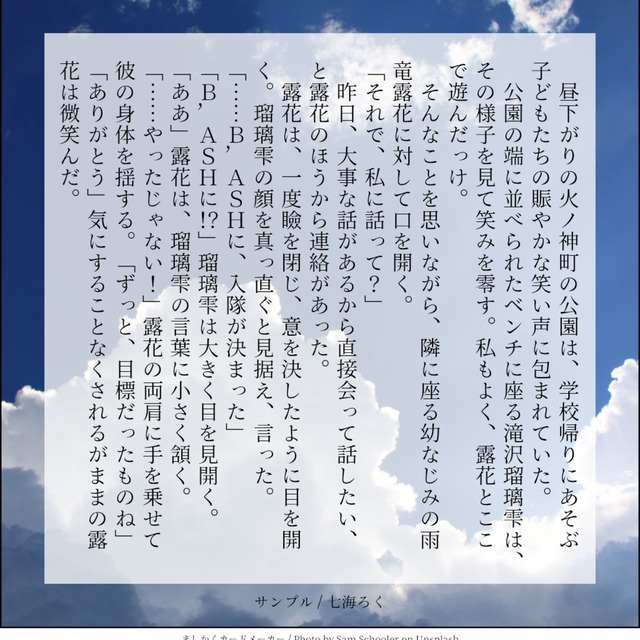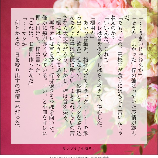 とても好きなシチュエーションでしたので、楽しく書くことができました。またぜひ書かせていただけますと幸いです。