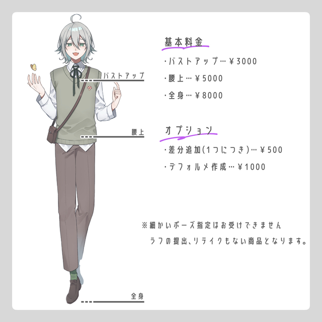 TRPG セッションで使用予定の全身立ち絵を依頼させていただきました。