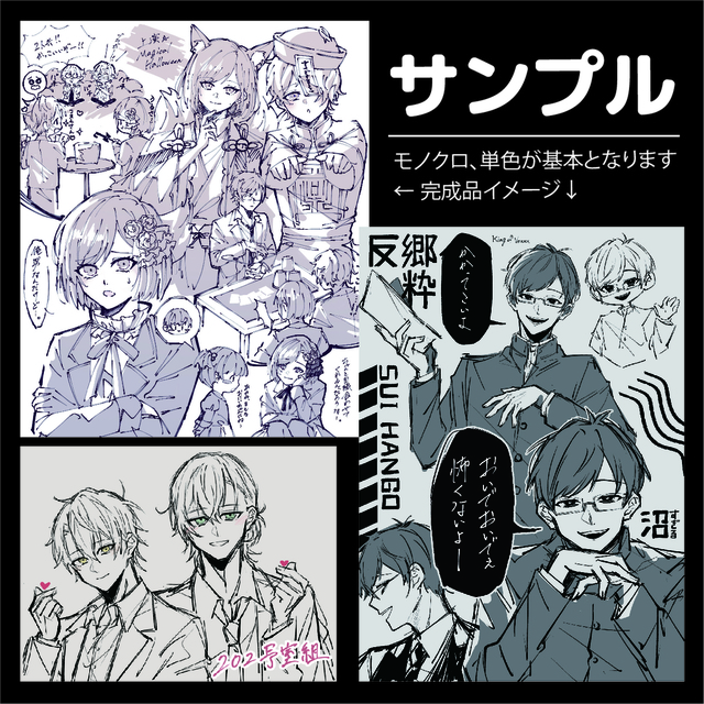 TRPGの自陣イラストをお願いしました。限られた情報の中からキャラの性格や関係性を汲み取っていただき、刺さるイラストや漫画を描いてくださり本当に嬉しいです。いただいたイラストは大切に何度も見返します。またぜひお願いしたいです!