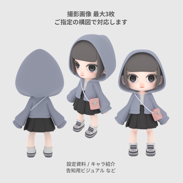 イラストから制作|ミニキャラ3Dモデル(ポーズ固定)