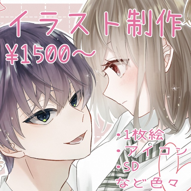 一枚絵、立ち絵、詰め込み絵など色々描きますのでお見積もりだけでもお気軽にお声掛けください!