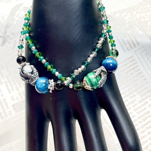 自分の大切なキャラクターのイメージを元に、ブレスレットを作ってくださいました!とても緻密で繊細な編み込みが魅力的です。特に、キャラクターの設定に基づいたアイテム選びや構成には感動致しました。丁寧なやり取りとアイディアを駆使した物造り。推し作家です。これからも多くの作品を手掛けていってほしいです。陰ながら応援しています!