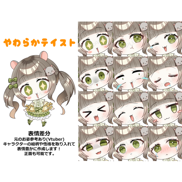 グッズ、サムネなど便利なデフォルメイラストを作成します。