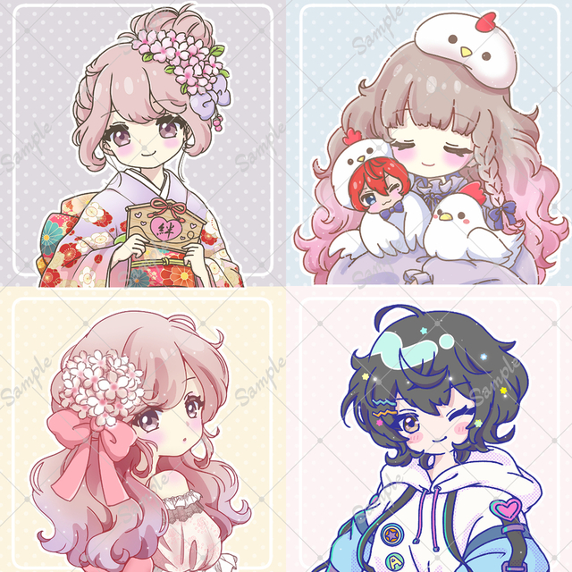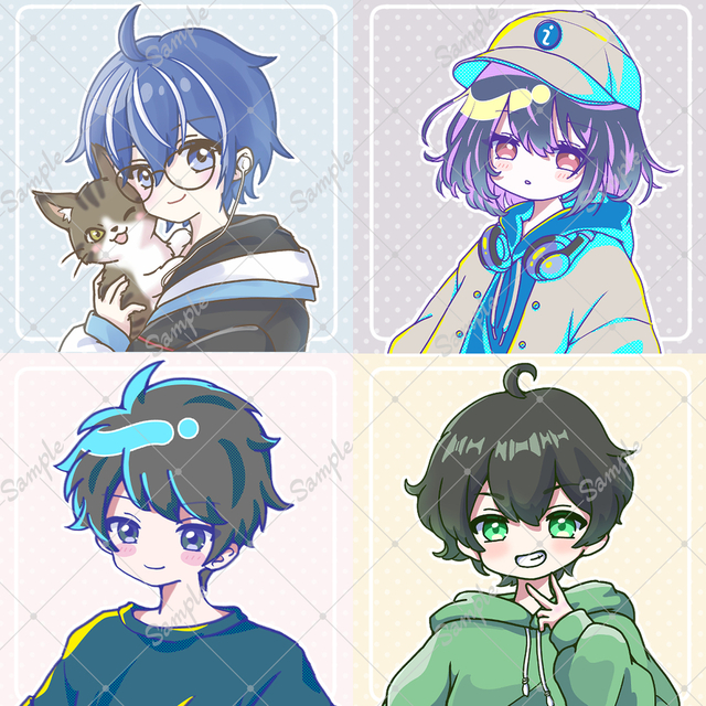 ・似顔絵ではなく、髪型やアイテム等で雰囲気を寄せるイラストとなります