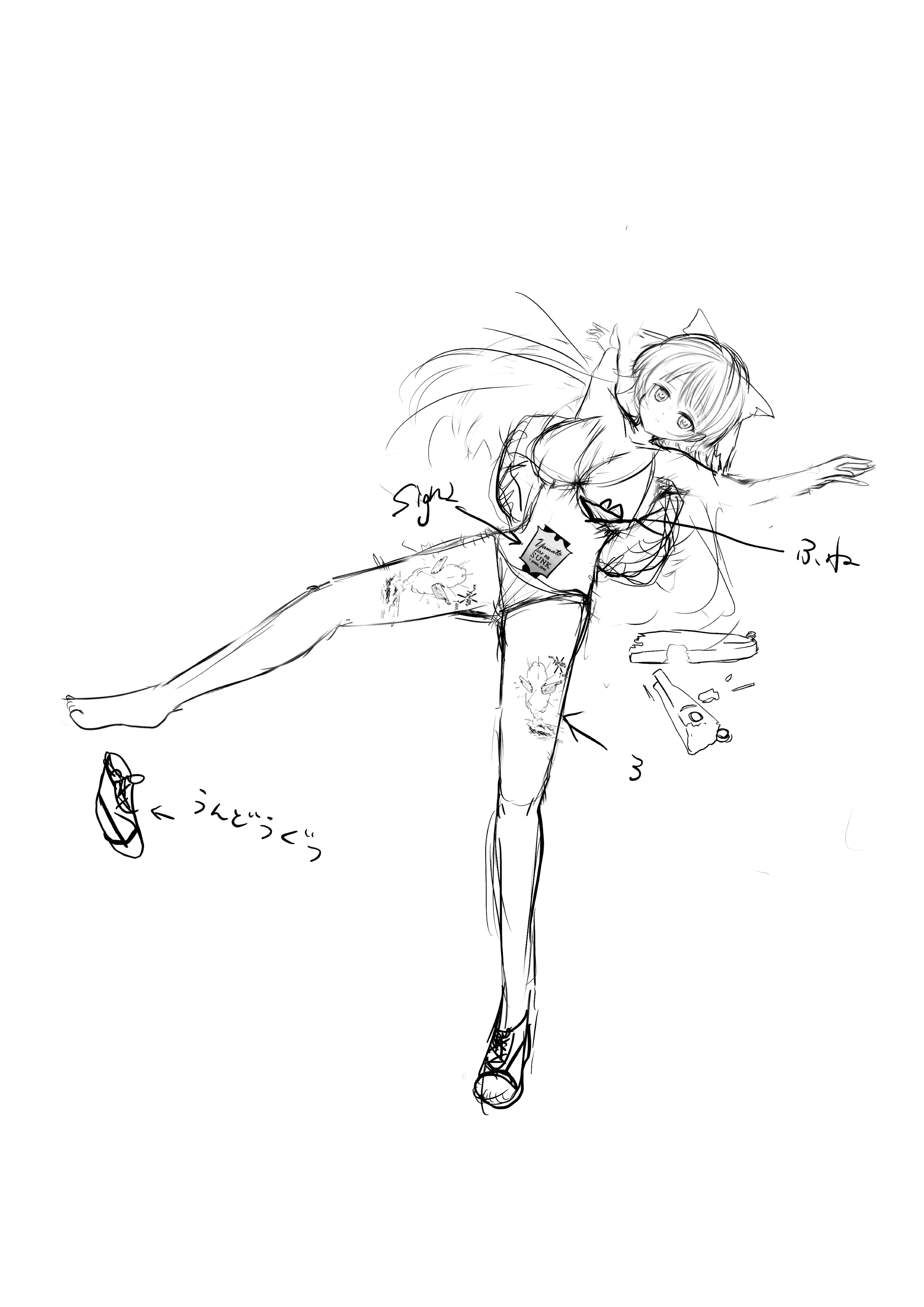 3、うつ伏せに倒れている絵:概ねのポーズと構図が分かる程度まで完成しております。