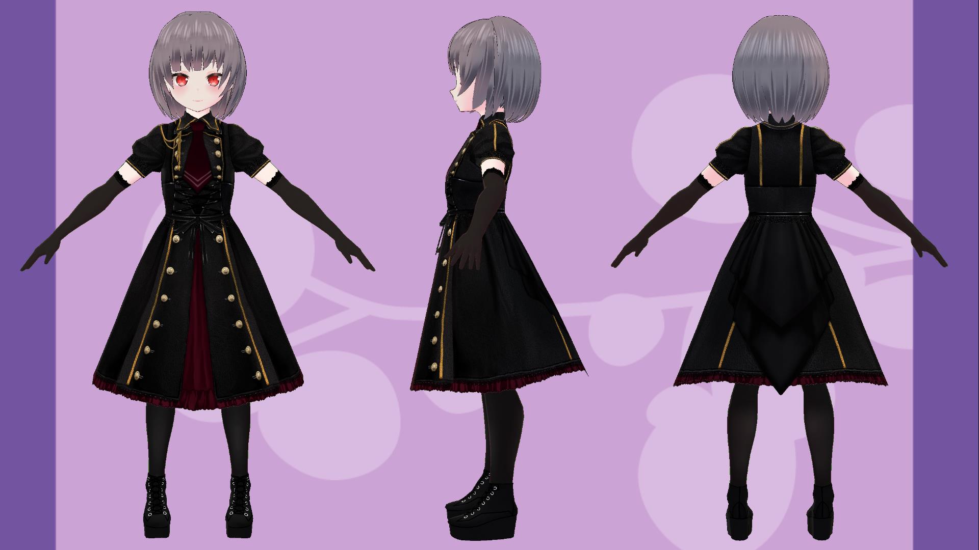 私の立ち絵のサンプルと3Dの三面図を添付致しましたのでこちらのキャラクターデザインを基に