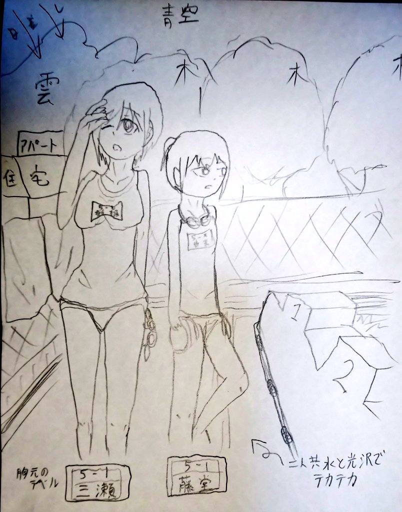 二枚目と三枚目は登場する女の子の絵です。茶髪の女の子が左、おさげの子が右(描いていただく絵ではお団子ヘア)となります。