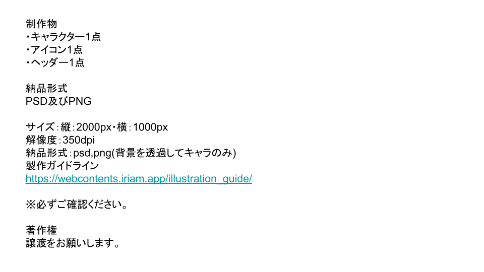 初めまして、見てくれてありがとうございます! ライブ配信用のキャラクターイラストを作って頂きたくて募集をしました。 皆に愛されるような素敵なお姉さんをイメージしております。 仕様とイメージを添付資料にまとめております。 たくさんのご応募をお待ちしております。 よろしくお願いします!