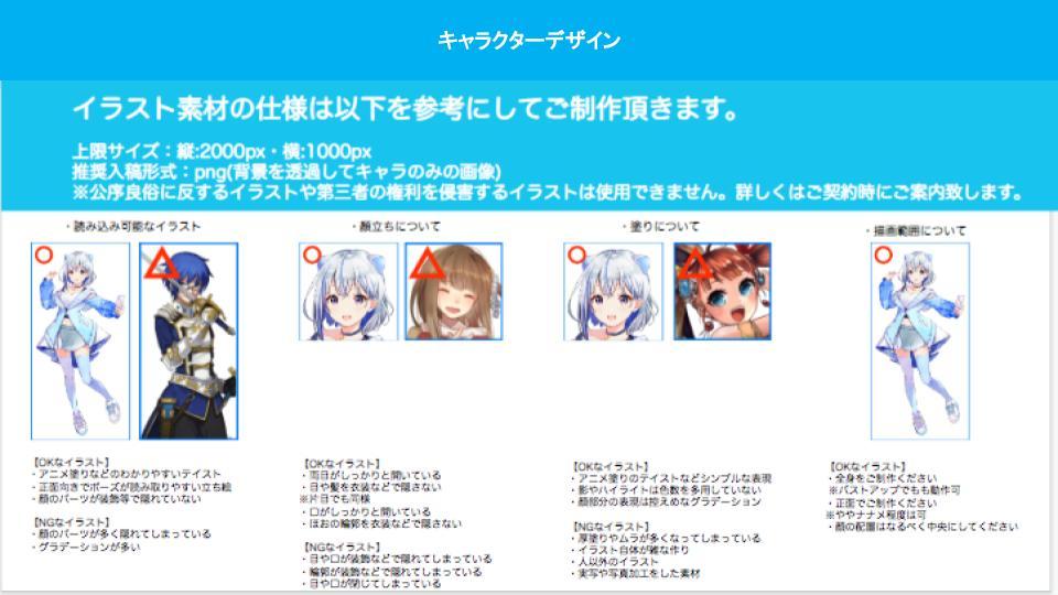 ☆ライブ配信用に男性アイドルキャラクターイラストを作って頂きたいです。 仕様とイメージを添付資料にまとめております。 IRIAMでの配信用で想定しておりますので仕様をご確認のうえご応募頂きたいです。 ご応募お待ちしております。 ※制作期間は概ね14日となっております。 (制作〆切5月31日予定)