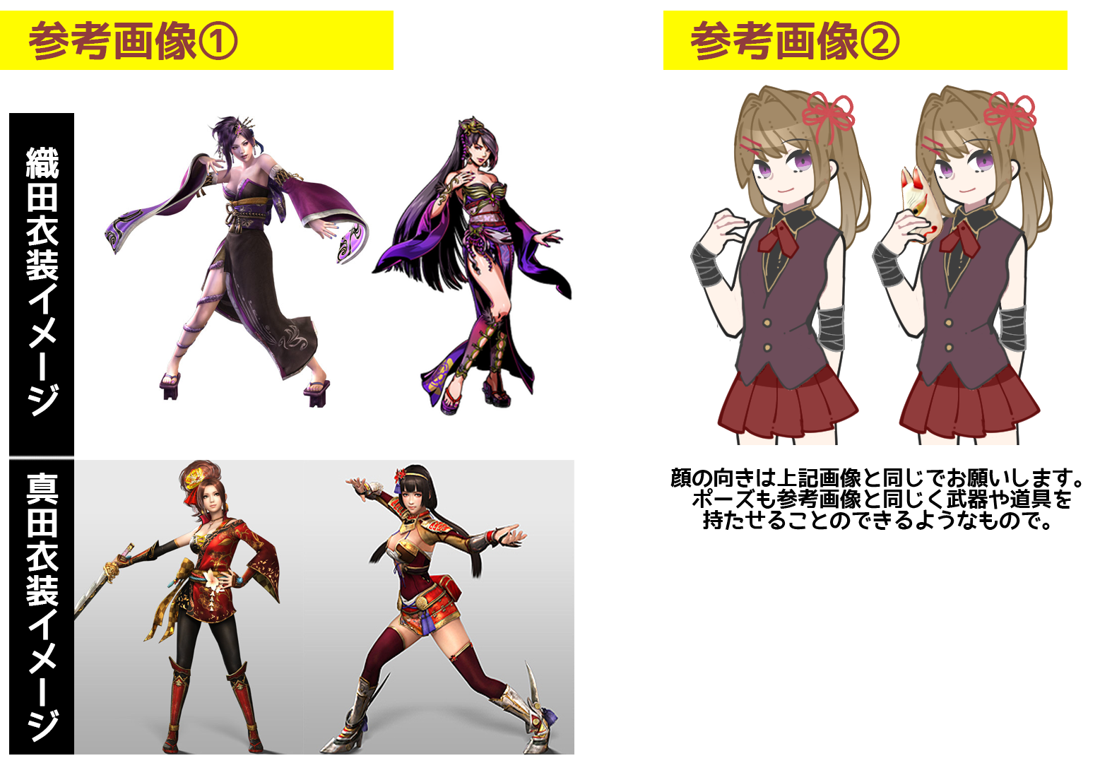 織田衣装ver、真田衣装ver両方の衣装分の立ち絵をお願いします。