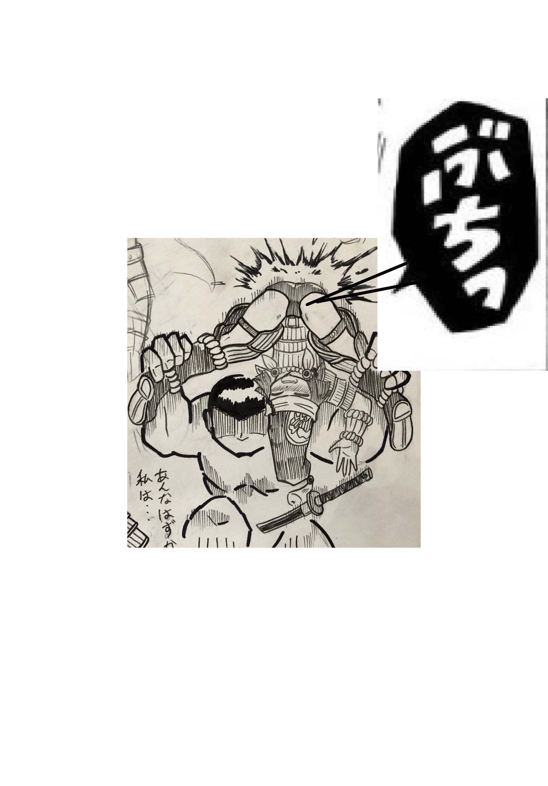 屈強な男(シルエットでOKです)に両太ももを押さえつけられて、キン肉バスターをかけられ、股裂きの痛みと恥ずかしさに耐える表情をした状態とします