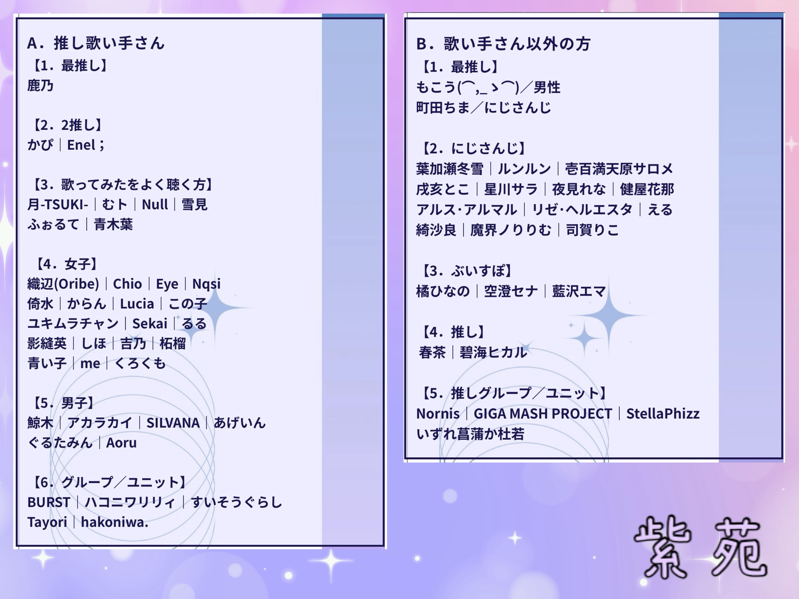 → 女の子/中堅/ソロ勢推し