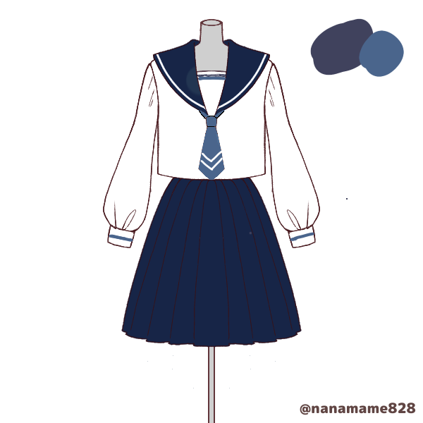 ・服装 : 天築学院のセーラー服(夏)。焼けたくないので夏用の長袖セーラー服を着用している。3年生なので青いネクタイ。スカート丈は膝上。昼は引きこもりなのでとんでもなく色白。こっそりピアスも開いている。