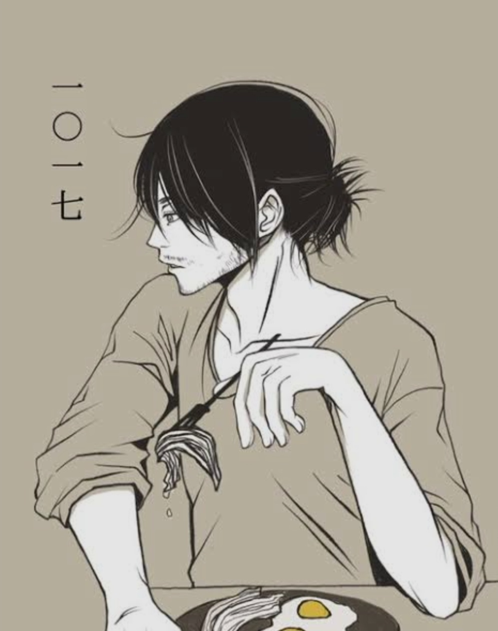 画像では真横を向いていますが、もう少し正面寄りにしていただきたいです。髪は長髪ではなく、後ろの団子を無くしたぐらいの長さにしてほしいです。イラストのように微量の無精ひげを生やして欲しいです。