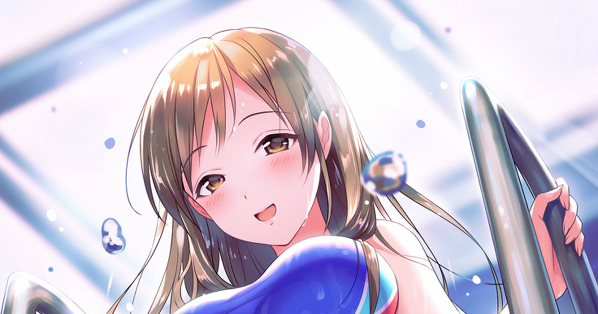 ・差分として女の子が男の子(通常イラストの表情に頬を赤らめている状態)の股下から右手を伸ばして競パンの上から股間をまさぐっているイラストをお願いします