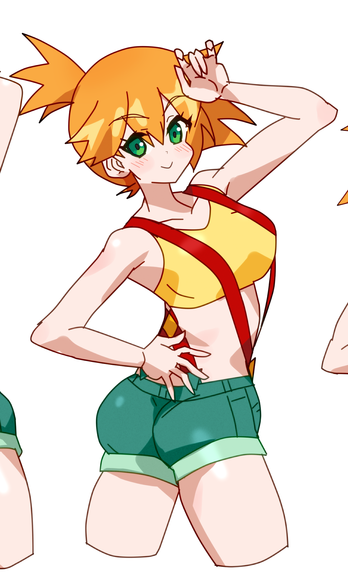・ポーズ 尻と乳がしっかり描写されているのが好ましいので、添付ファイル「ポーズイメージ」を参考に、足を開いてこちらに尻を向けながら振り向いている。尻と乳を隠さなければ、手の位置はお任せします。