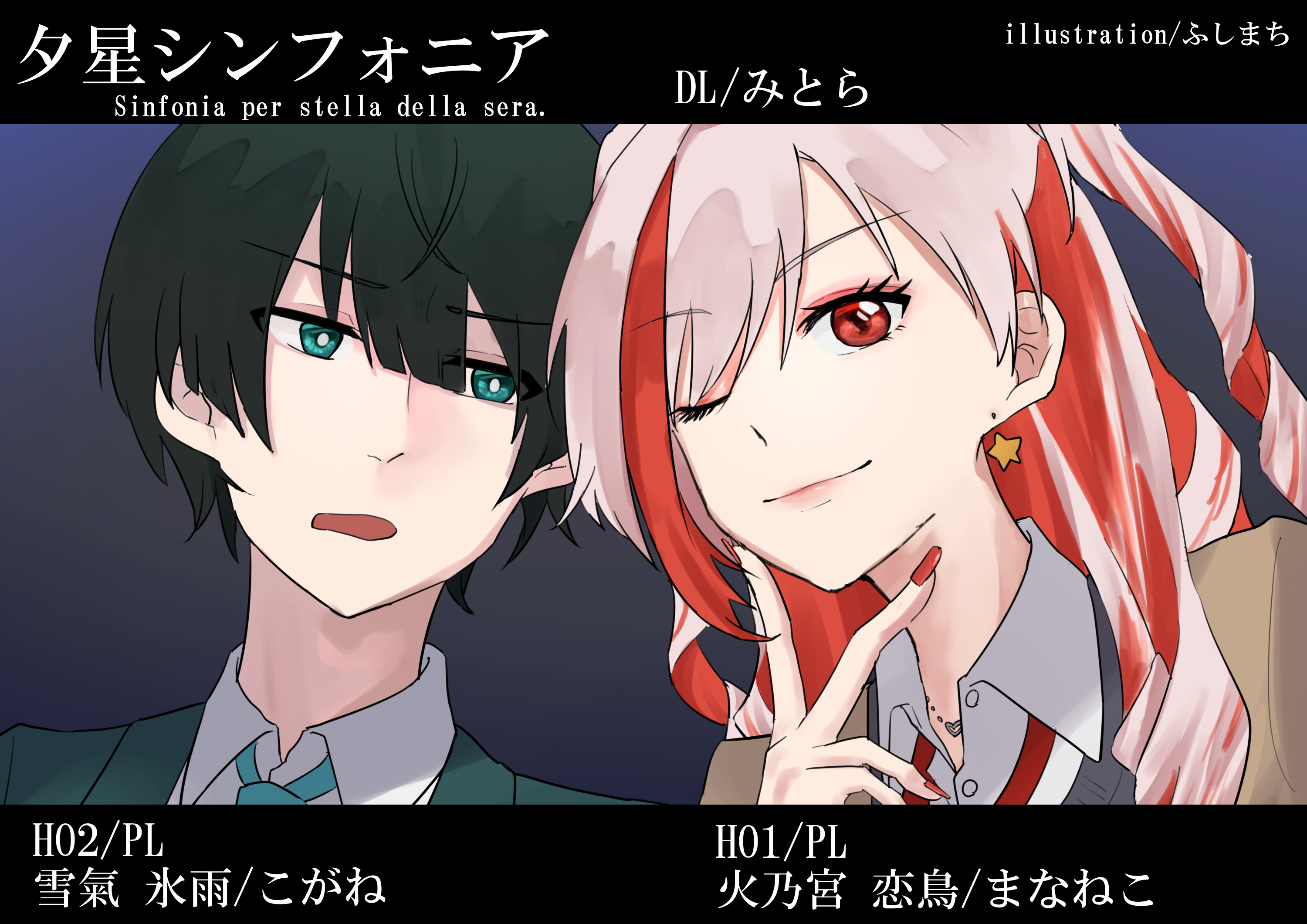 ②男子大学生でゆるゆるヘラヘラタイプ。あざとい部分のあるヒモ男系。軽薄でやる気のない男だが憎めないヤツ、という印象が強いが実際は過去に手の怪我により夢や将来を諦めざるを得なかったことであらゆる物事に対する執着を捨てた人。楽器も楽譜も全捨てて諦めたとしているがその実諦めきれていない。イメージカラーはウルトラマリーン(#356CAC)でHO空:氷なのでベースは水色